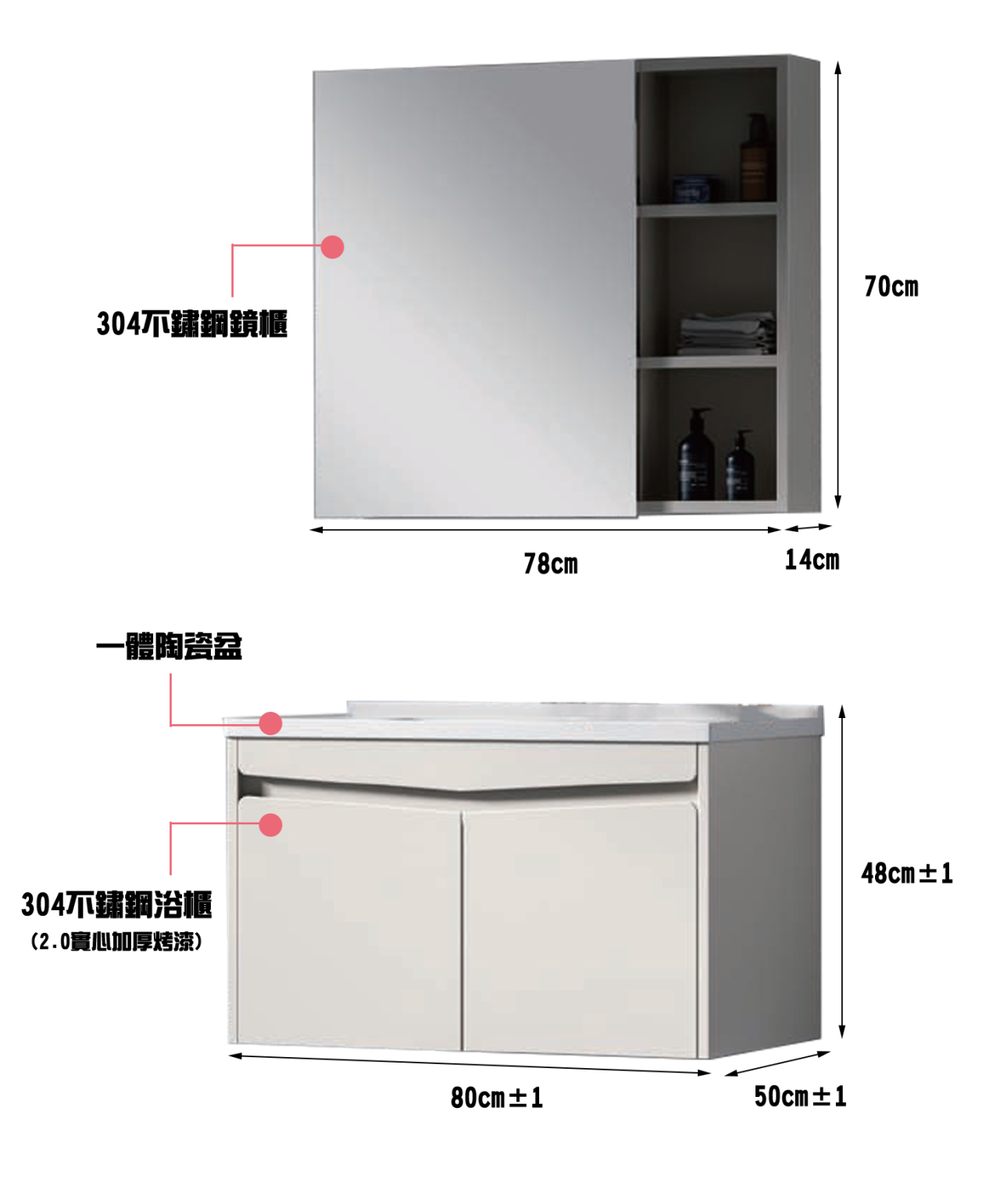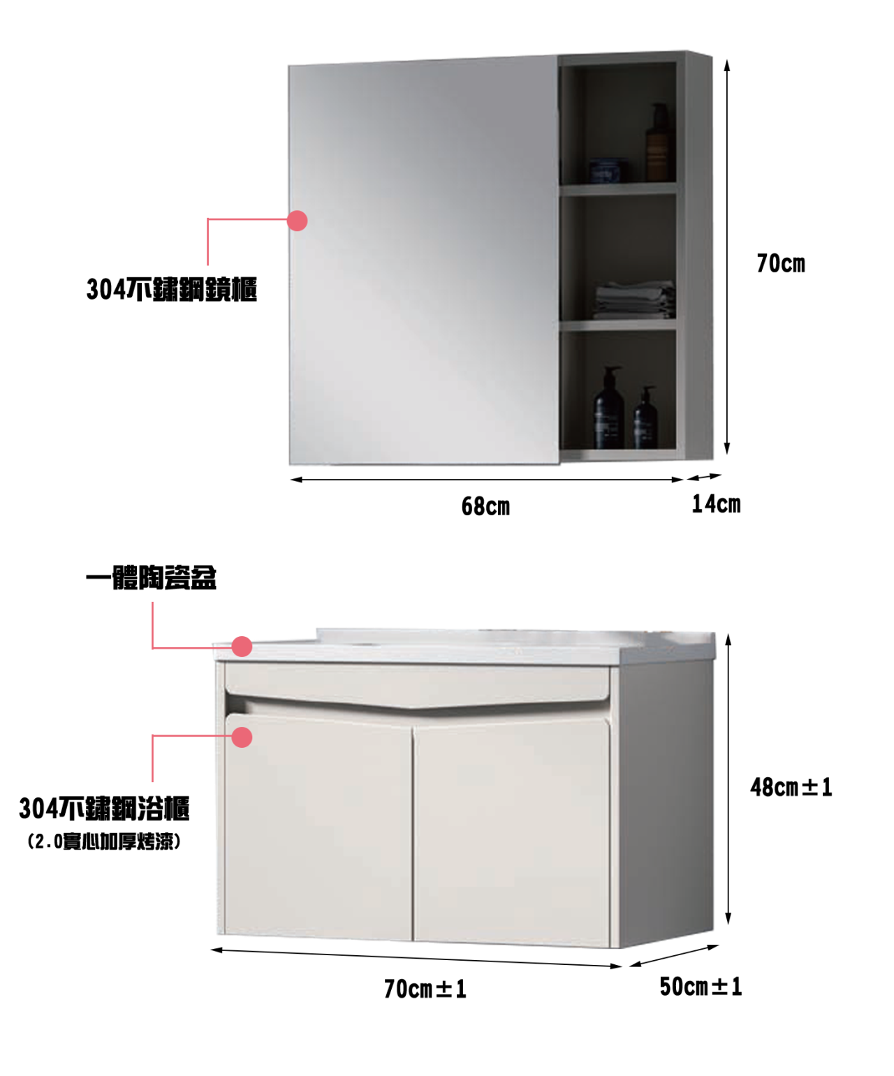 主櫃:600/700/800*500*480 鏡櫃:580/680/780*140*700