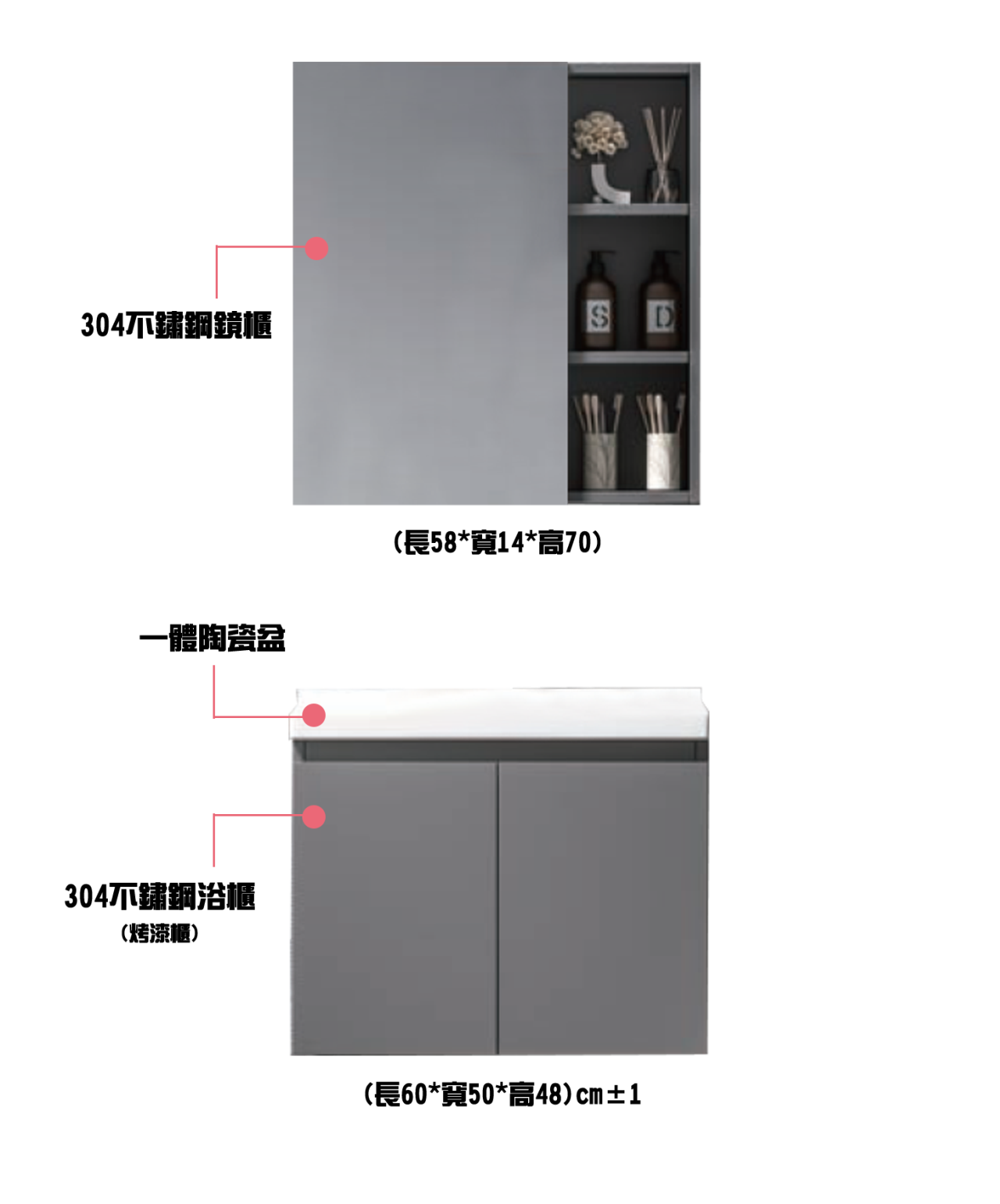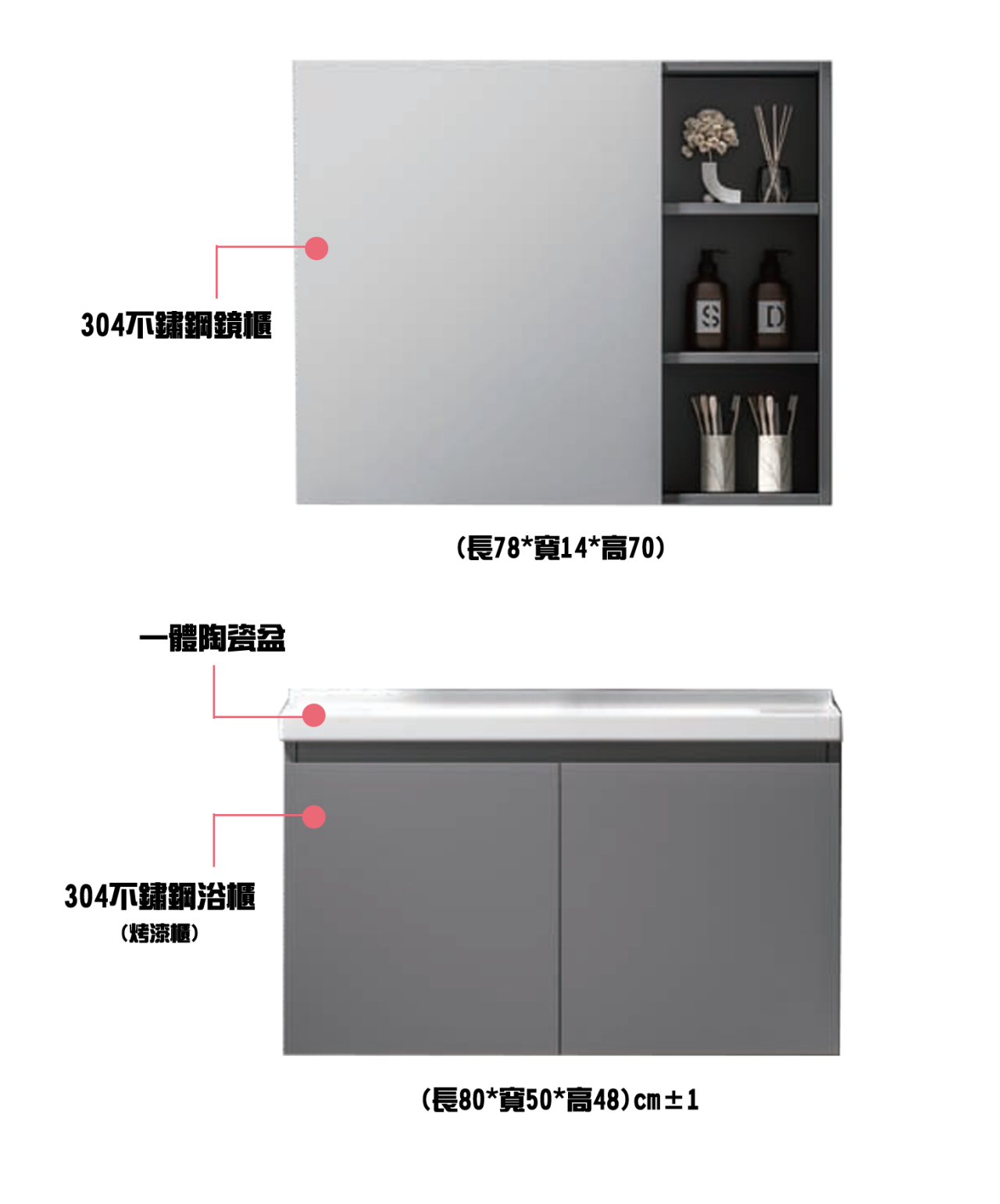主櫃:600/700/800*500*480 鏡櫃:580/680/780*140*700