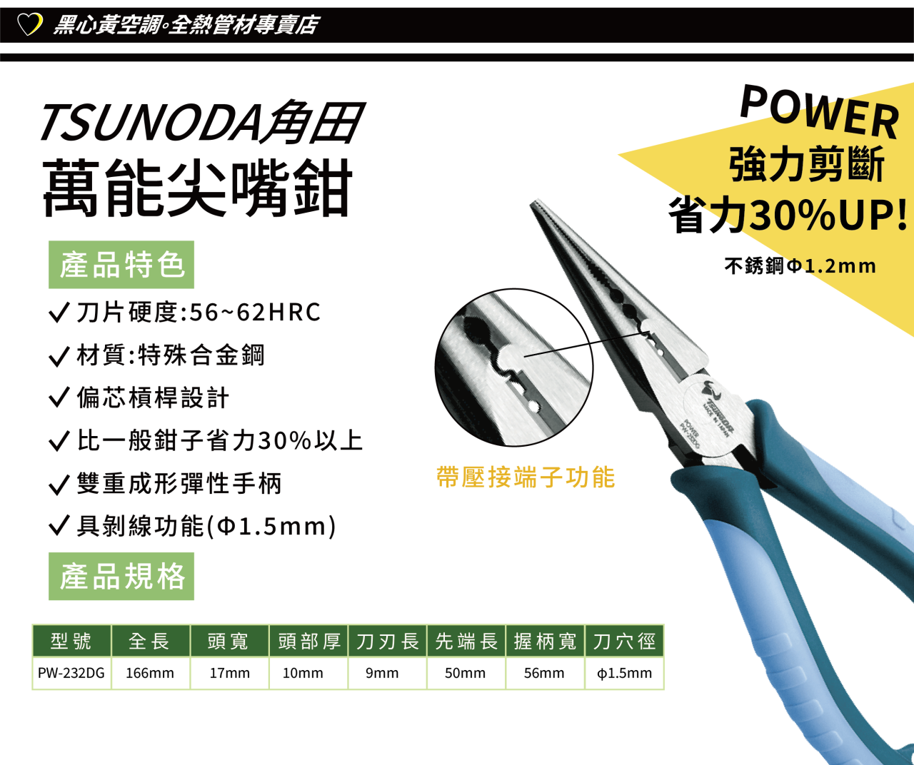 ▲刀片硬度:56~62HRC ▲材質:特殊合金鋼 ▲偏芯槓桿設計比一般鉗子省力30%以上 ▲雙重成形彈性手柄 ▲具剝線功能(Φ1.5mm)