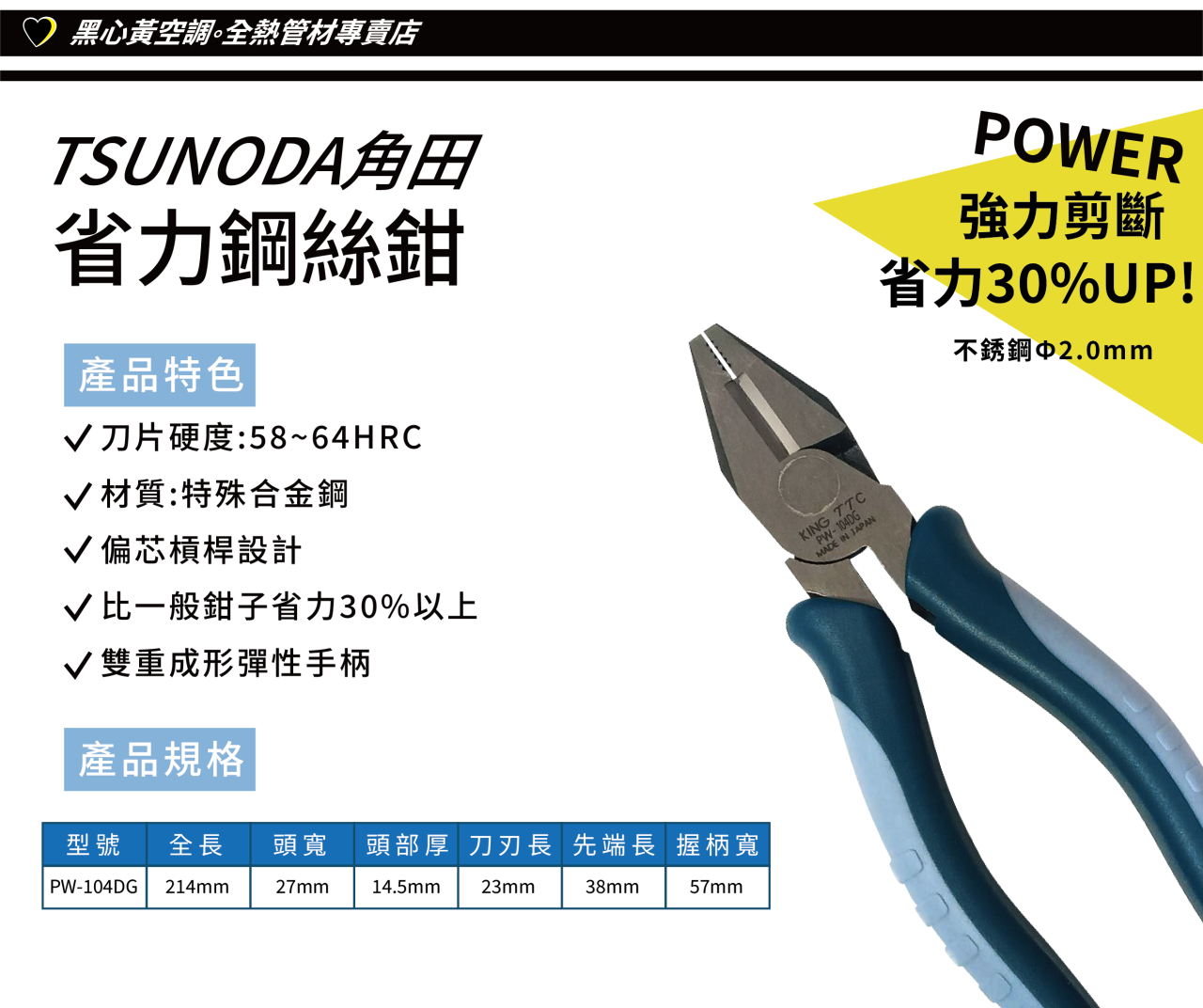 TSUNODA角田 省力鋼絲鉗 \PW-104DG
