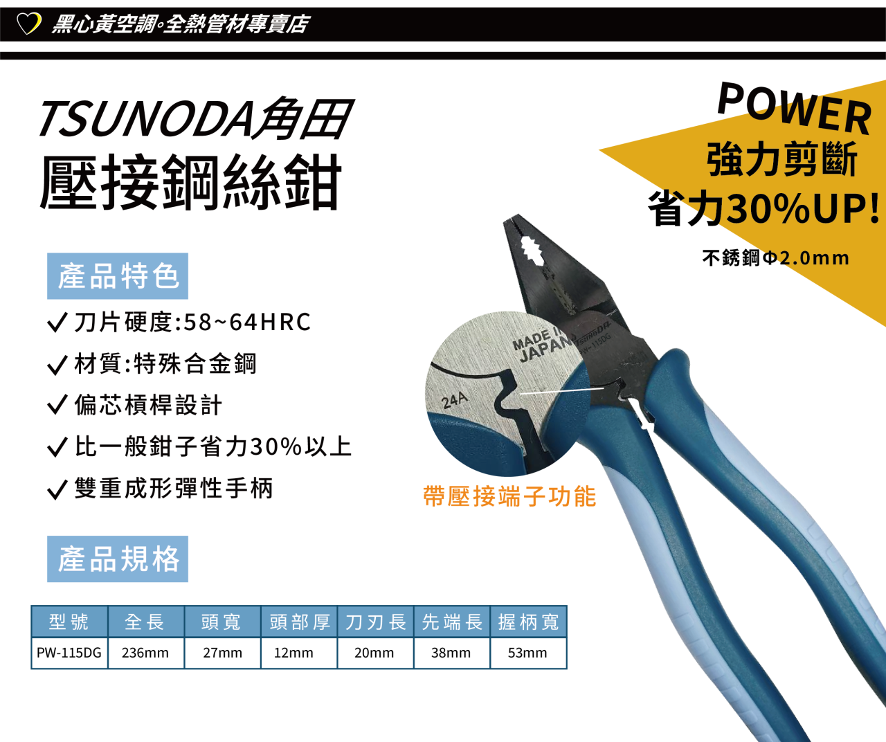 TSUNODA角田壓接鋼絲鉗\PW-115DG -