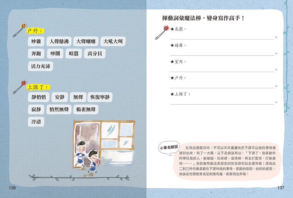 寫作小叮嚀:本書作者根據自身教學、寫作經驗點出孩子在寫文章時可能會遇到的盲點。