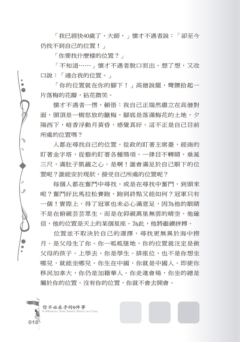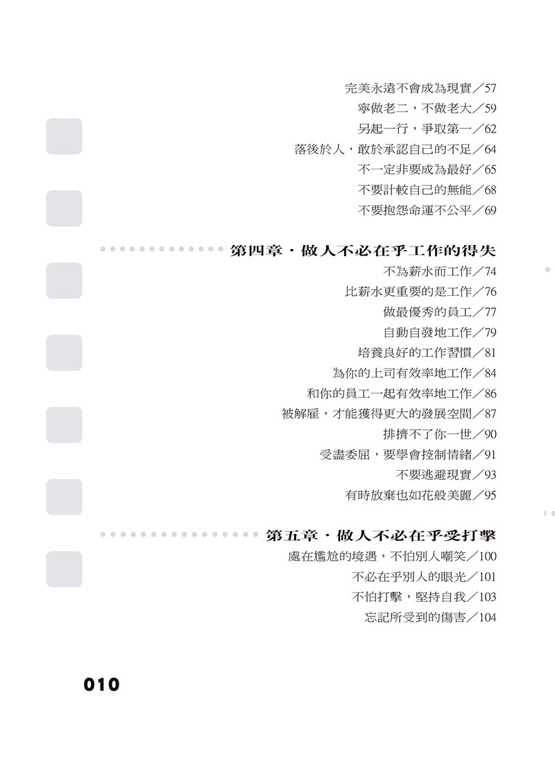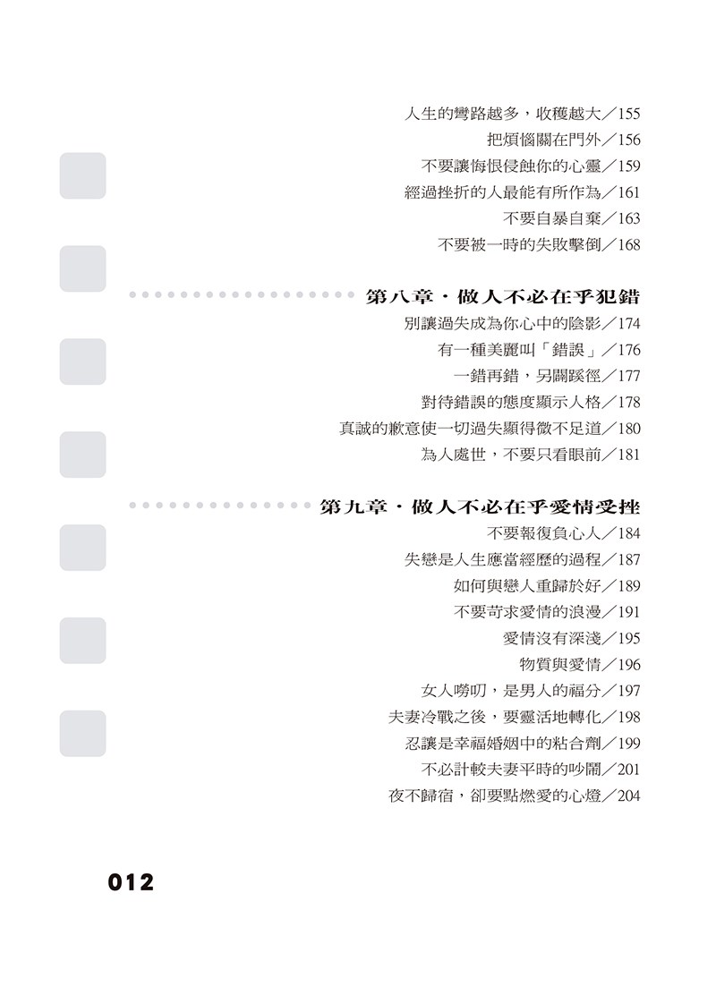 本書著重分析和闡述做人的基本方法與途徑,書中評論精闢、案例生動、取材廣泛。它可讓你體會到生命中的缺口仿若我們背上的一根刺,時時提醒我們要謙卑,要懂得憐恤。若沒有苦難,我們會驕傲;沒有滄桑,我們就不會同情那些不幸的人。