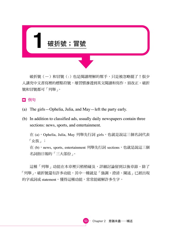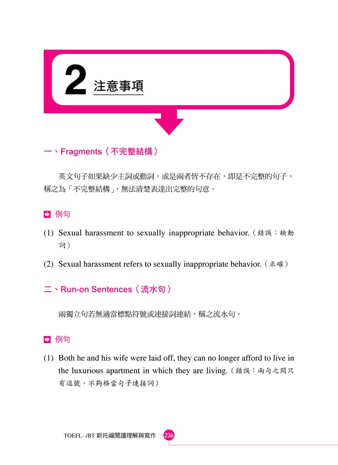 列舉出許多容易犯錯的地方,釐清觀念並且提供練習題,清除閱讀和寫作的障礙。