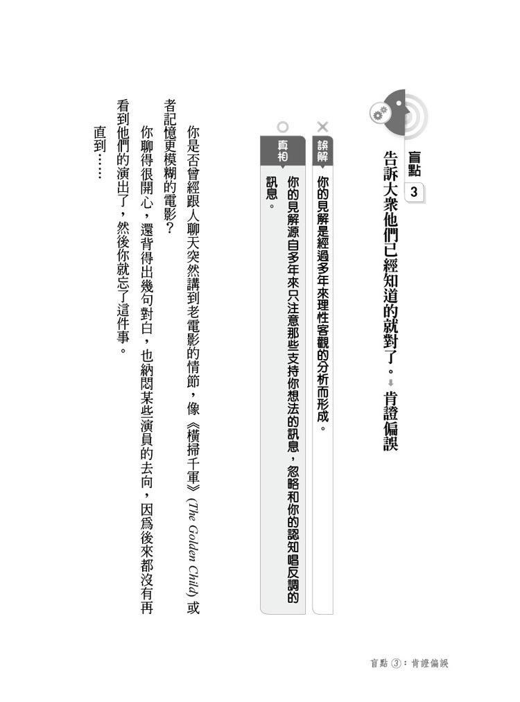 人的思考有一定的運作方式和各種光怪陸離的盲點,每個人都有,每天都在影響我們的生活,但人不太有「自知之明」。