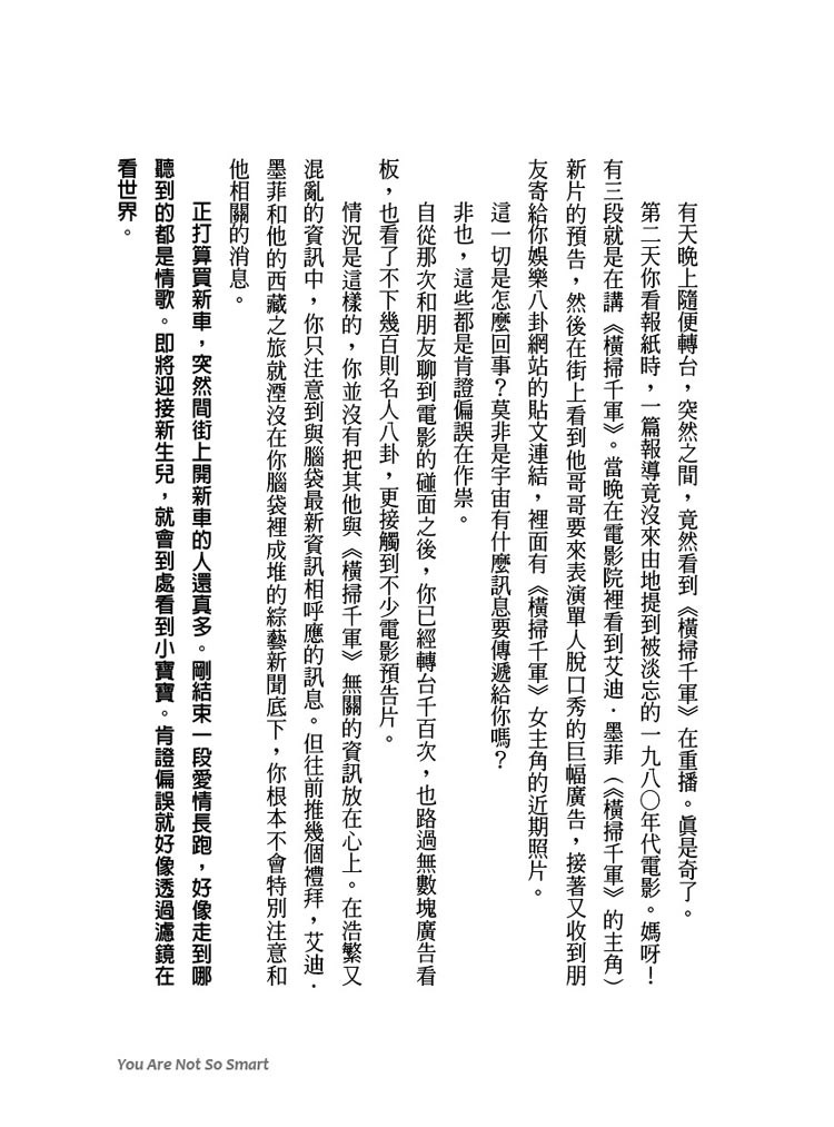企業界比心理學家更早發現人心的操縱按鈕,所以吃漢堡竟會讓我們覺得置身歡聚時刻,牛奶盒上印著乳牛就讓我們喝得很安心。知道了人有一籮筐的不理性,下回再聽說路倒翁沒人救,不會再像別人老套地感歎:「人心不古」,你會知道那只是「旁觀者效應」作祟;看到兩派歌迷在網路上吵誰比較優,你會知道瘋迷必須證明自己永遠是對的;看到樂透迷用熱門新聞事件猜明牌時,你不會跟著買,只會理解地笑一笑。