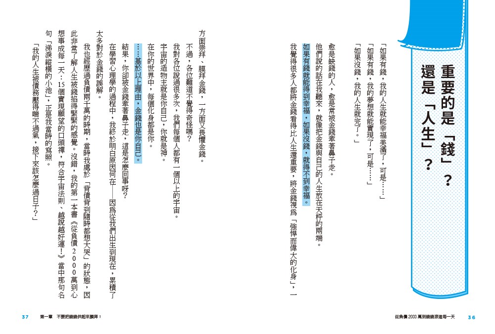 在你的宇宙中,你所看到的一切都是你自己,因此錢錢也是你自己。你如何對待金錢,「這個宇宙就會如何對待你」。試著改變對待金錢的方式,人生的根基會因此產生變化,而金錢以外的問題,也會將迎刃而解。