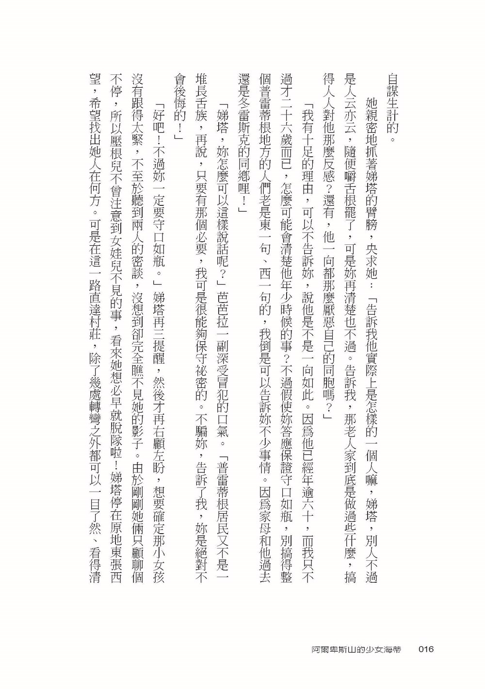 年幼就失去父母的海蒂,被姨媽帶往爺爺所居住的阿爾卑斯山,一開始孤僻冷漠的爺爺非常排斥,但隨著時間過去,海蒂的開朗天真漸漸融化了爺爺孤獨封閉的心,海蒂在山上結交到許多好朋友,在風景優美的阿爾卑斯山過著無憂無慮的生活。