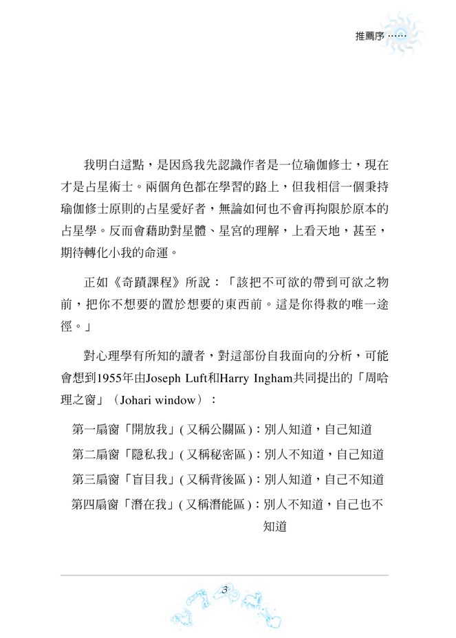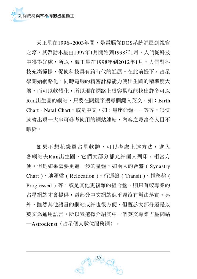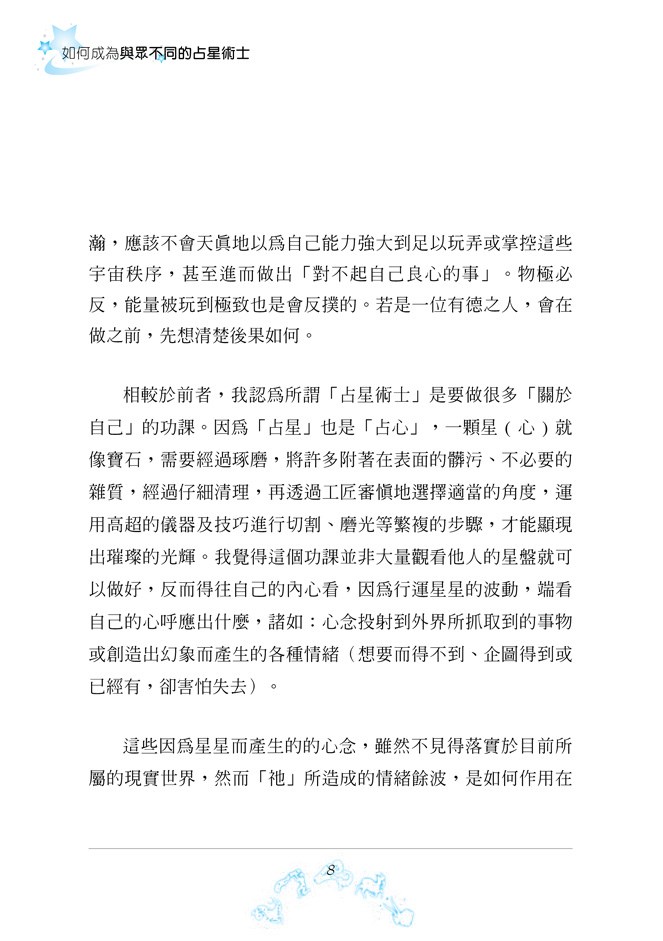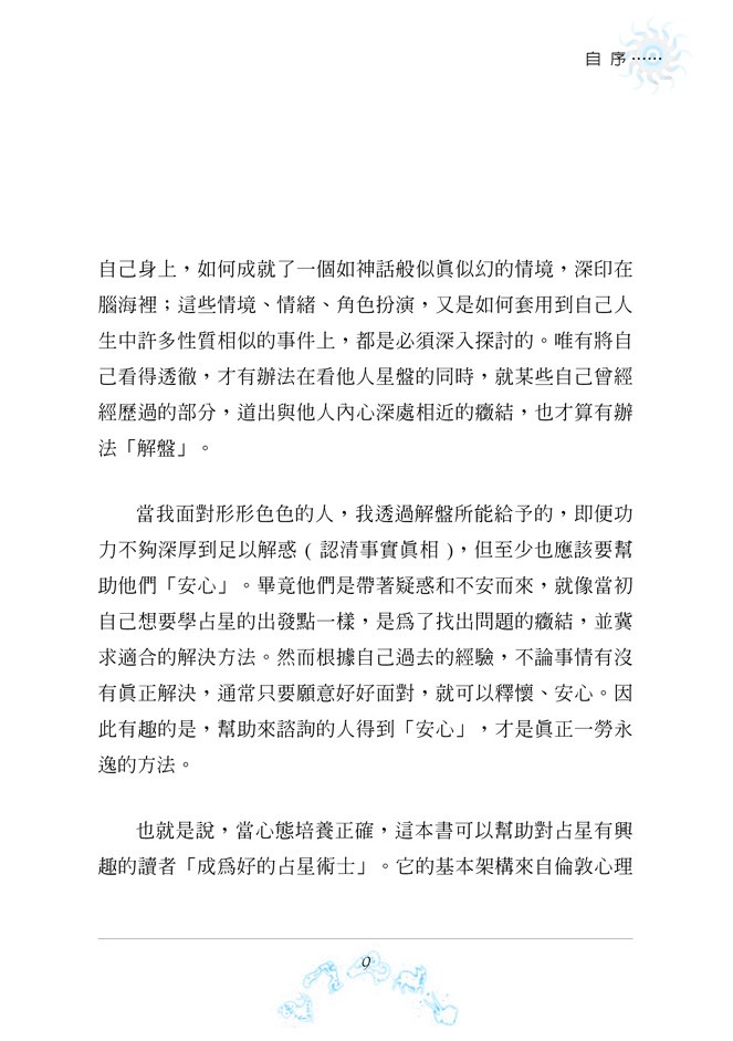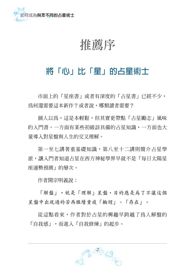 ●占星玩咖應該一看便知,本書提供新的視角、內容有別於一般「星座常識」,適合給有心學習的人,重新認知占星學。