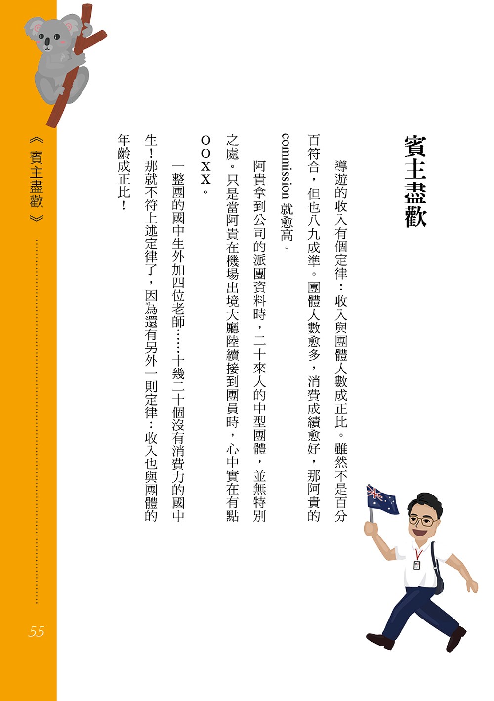 給菜鳥導遊的叮嚀、各種突發狀況的因應、如何賓主盡歡、團員百問Q&A都是本書寶貴的內容,是導遊們不可或缺的教戰手冊。