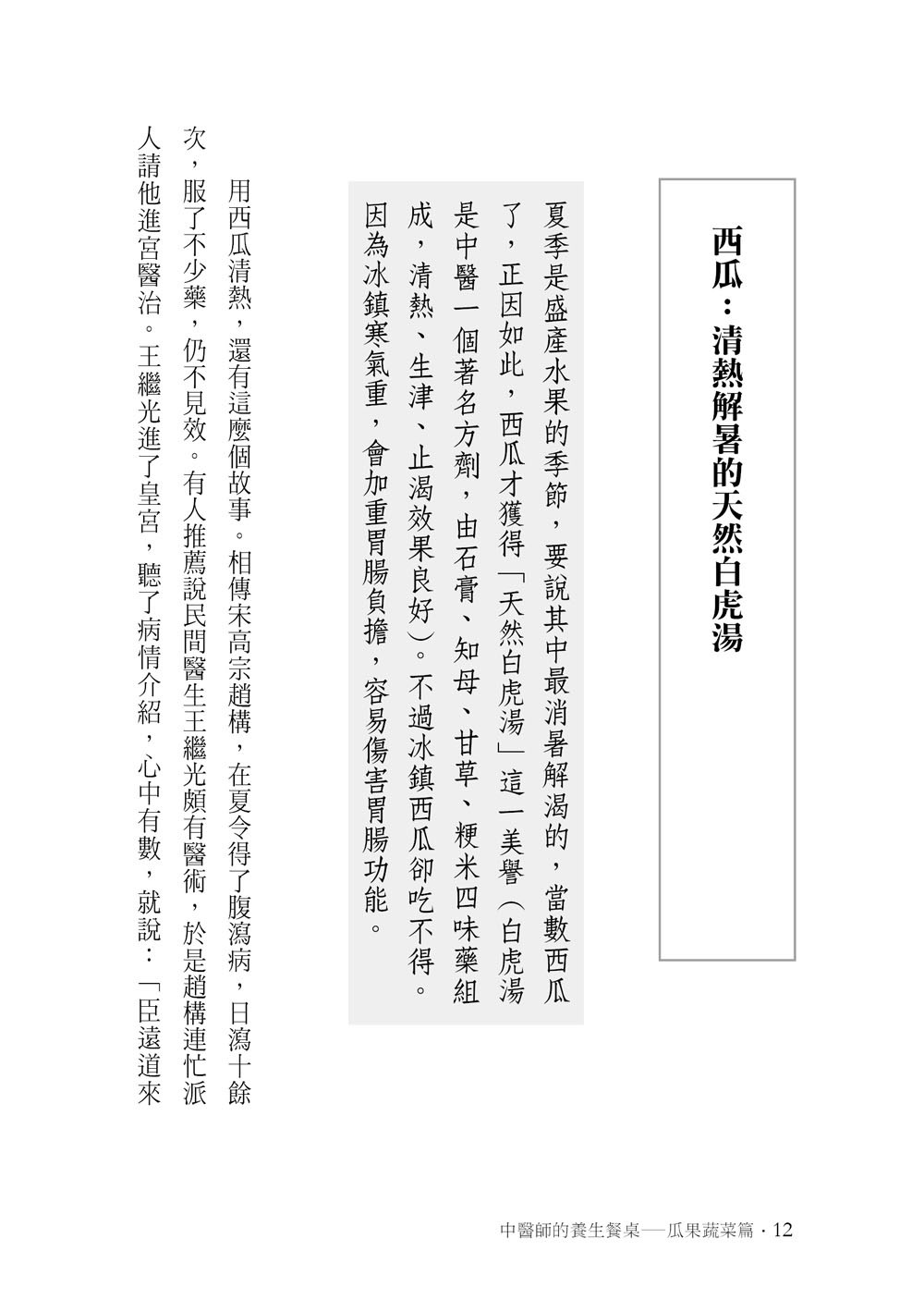 作者王鳳岐學理素養深厚,解說醫理通俗易懂,以最平實、最輕鬆的方式,傳達食材的中醫典故、趣味故事,還有養生俗語、地方傳說等,讀起來就像故事書!