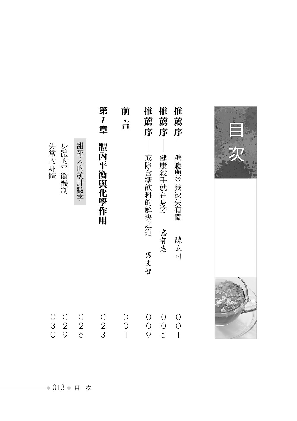不管你喝的是早餐豆漿、手搖茶飲、罐裝汽水、提神飲料還是健康飲品,只要含糖或其他甜味劑,都有可能讓人上癮、破壞體內平衡與化學作用、導致免疫系統虛弱,使傳染性及退化性疾病趁虛而入,進而引發氣喘、過敏、心臟病、癌症等健康問題!更不用說飲料中所含的咖啡因和人工代糖、色素、磷酸、香料等化學添加物,以及雙酚A、塑化劑等毒素!