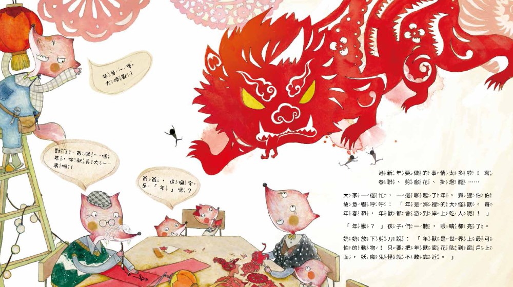 爺爺奶奶、爸爸媽媽都給了同一個嚇人的答案:「年是一隻可怕的大怪獸!」