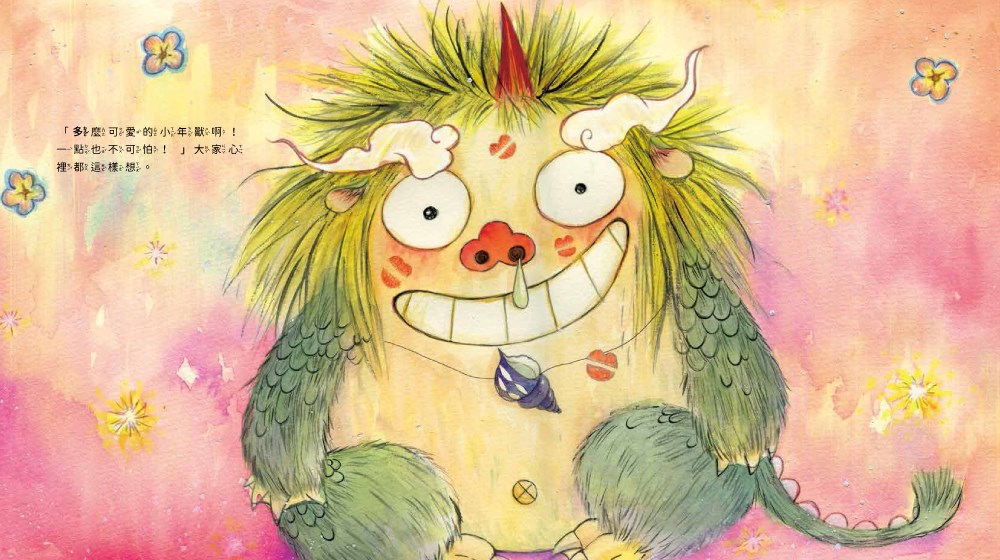 但本書將可怕的大怪獸模樣,畫成一隻被鞭炮嚇得淚眼婆娑、害羞又乖巧,看見什麼東西都往肚子吞的小怪獸,進而引起孩子對小年獸的好奇,想知道他究竟從哪裡來,是否真如大人們所說,他是一隻害怕看見紅色的怪獸呢?