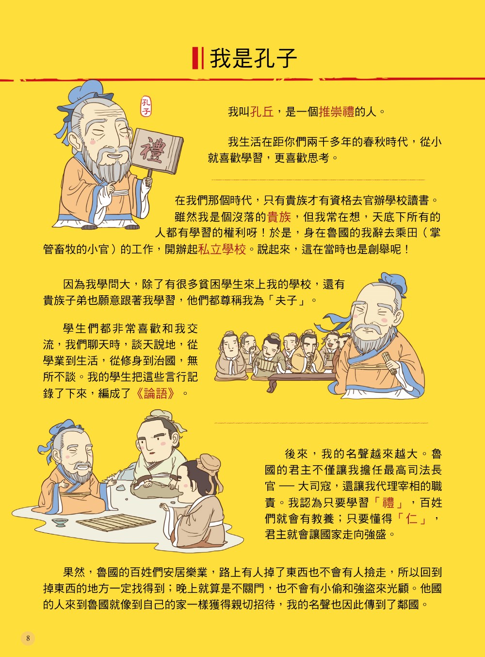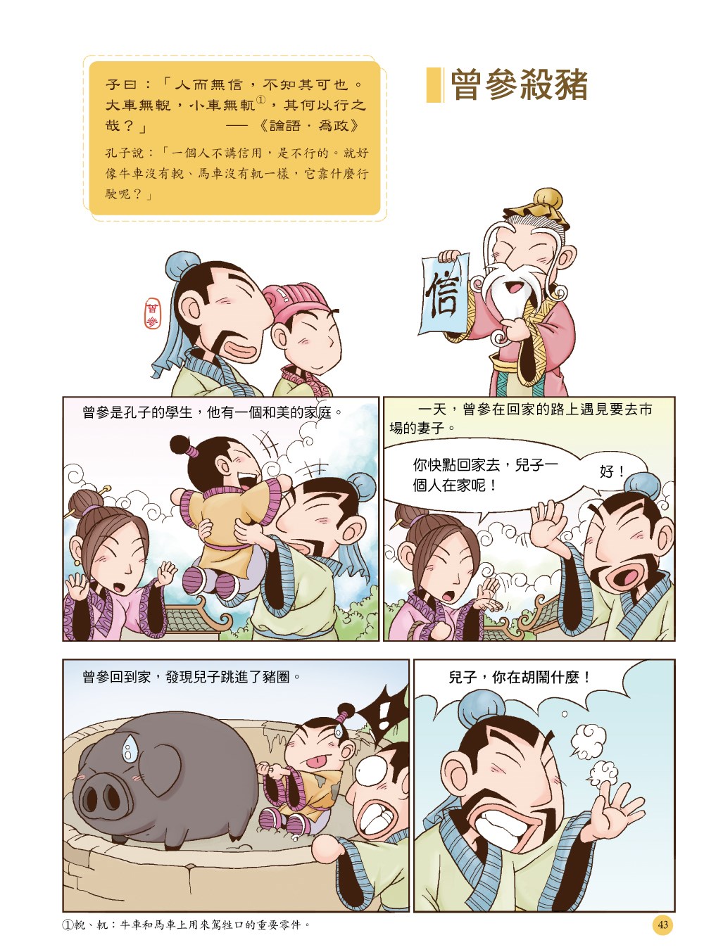 將歷史故事,藉由幽默的漫畫形式,搭配《論語》中的句子,