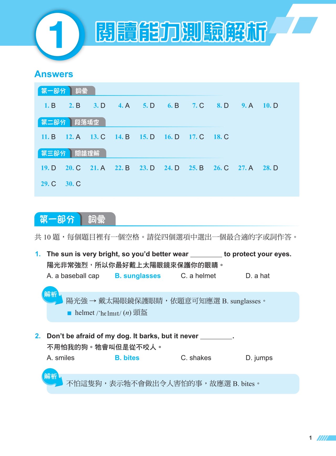 名師逐題解析,提點重要文法觀念,分享解題技巧,並詳列重要字彙、片語、句型,讓您逐步掌握解題關鍵,面對任何題目都輕鬆破解。