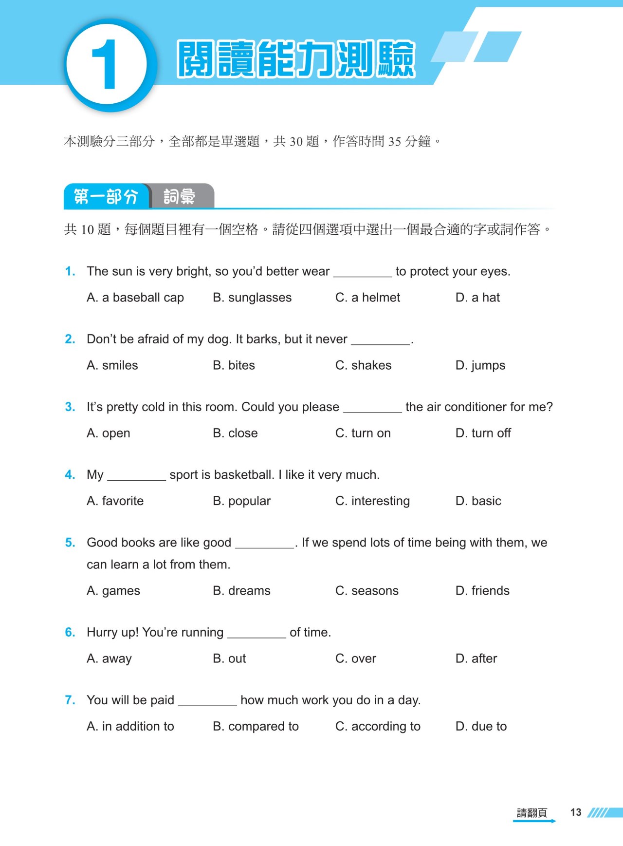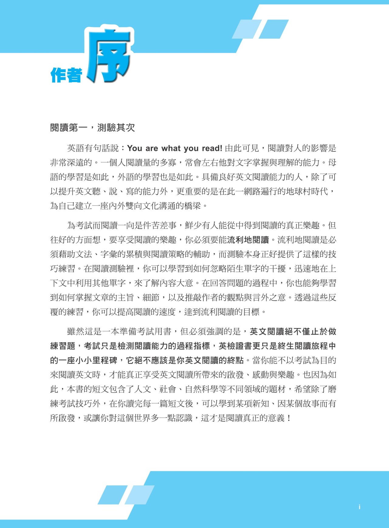 根據LTTC 命題準則編寫,考題最精準,且為市面唯一10回試題,主題涵蓋最完整;最經典的英檢教材,讓您快速提升應試實力。
