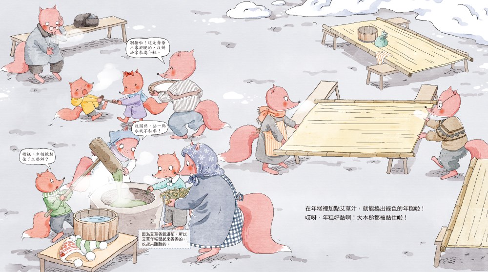 想要讓年糕有顏色不單調,狐狸家會怎麼做呢?糕餅模又能讓年糕變出什麼新花樣?如何讓年糕吃起來有嚼勁?吃不完的年糕,該怎麼保存呢?許多關於製作年糕或保存的小技巧,都可從對話中找到答案。