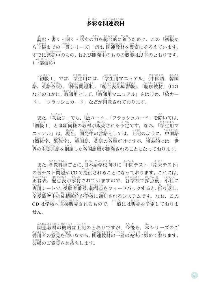 豐富的週邊輔助教材亦是本系列教材的特色。本書另有「教師手冊」、「學生手冊(文法與單字)」、「練習問題集」、「聽解練習問題集(隨書附MP3音檔)」(以上另售)。