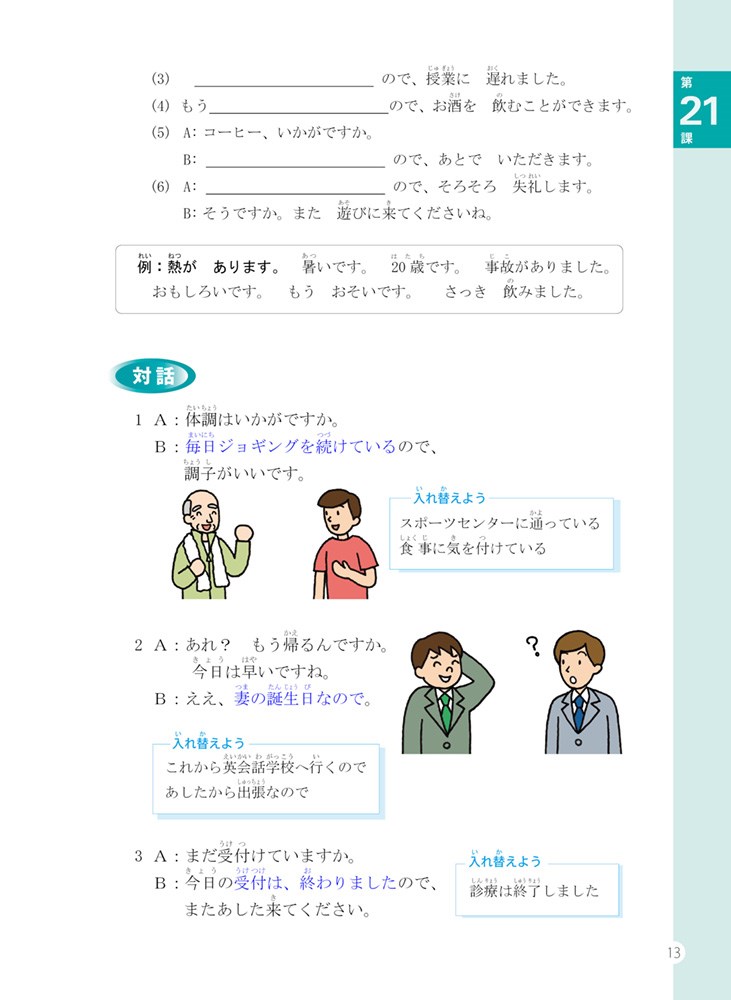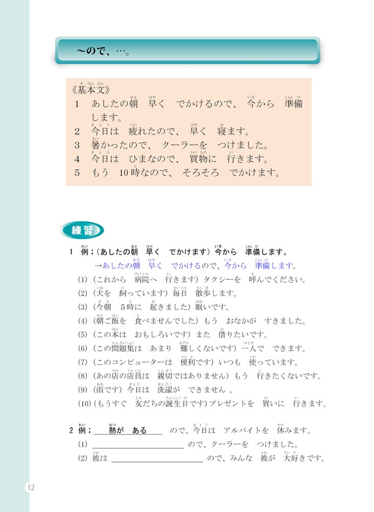 第1頁-導入頁 該課的學習文型提示、插圖。