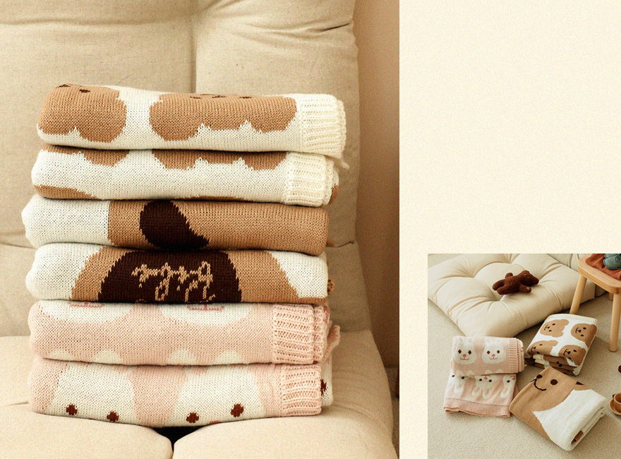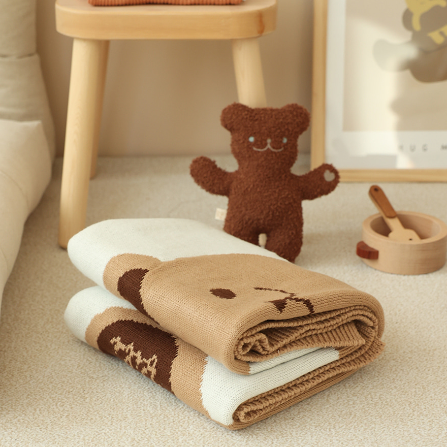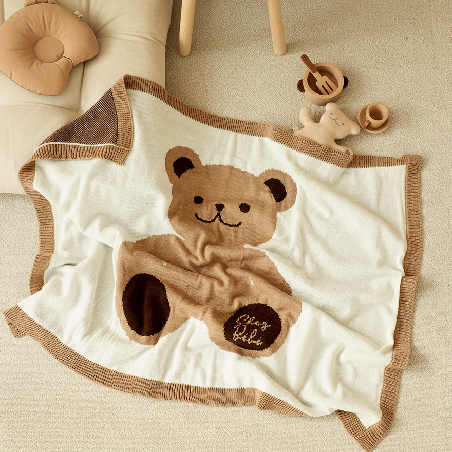 韓國製 Chezbebe 品牌小熊 針織毛毯 嬰兒蓋毯 沙發毯 電腦毯 (品牌小熊款)