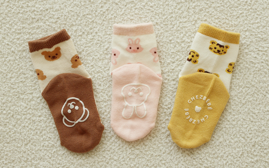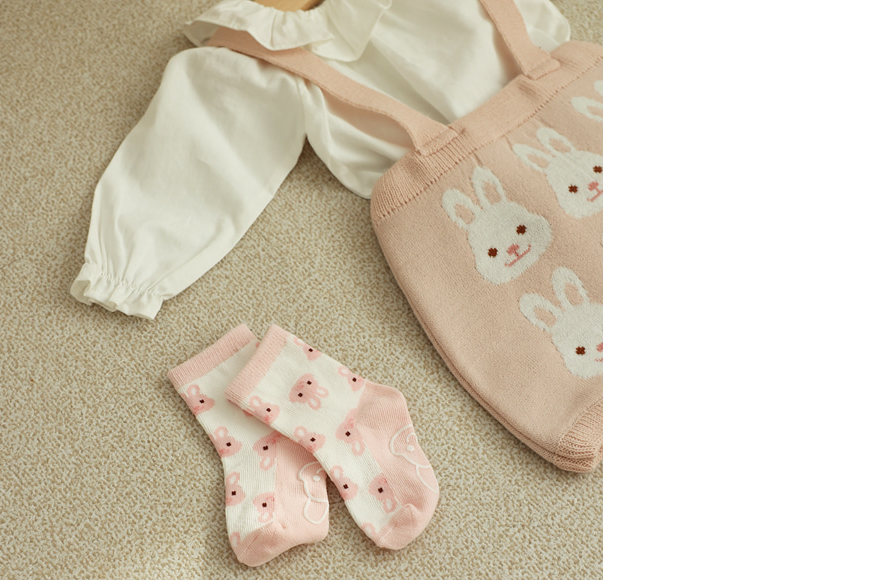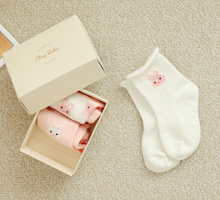 韓國製 Chezbebe 品牌小兔 嬰幼兒中長襪 防滑襪 (3入組)