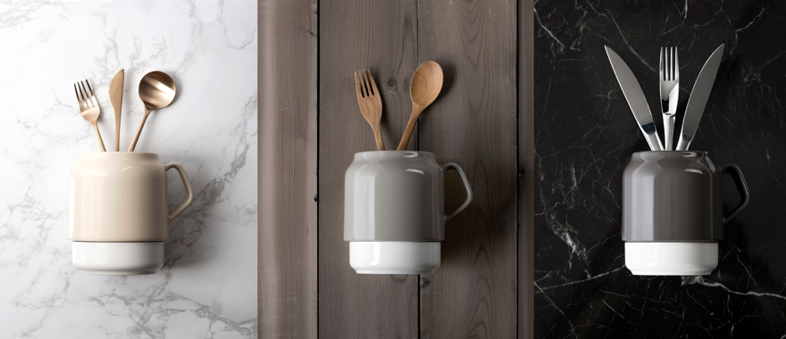 » 厚實陶瓷瓶身,即便是有份量的炊具也可安全存放
