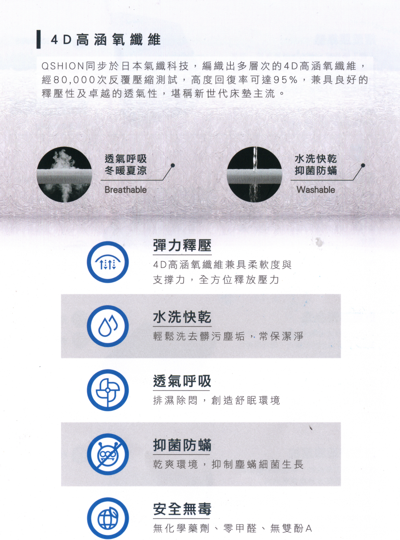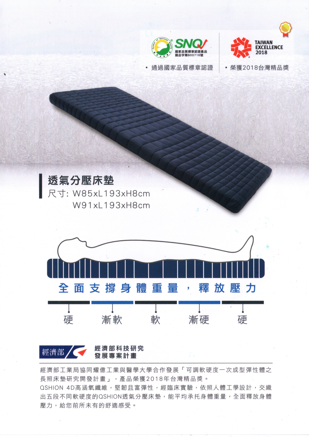 耀億4D高涵氧纖維透氣釋壓單人床墊-W91/L188/H8 cm