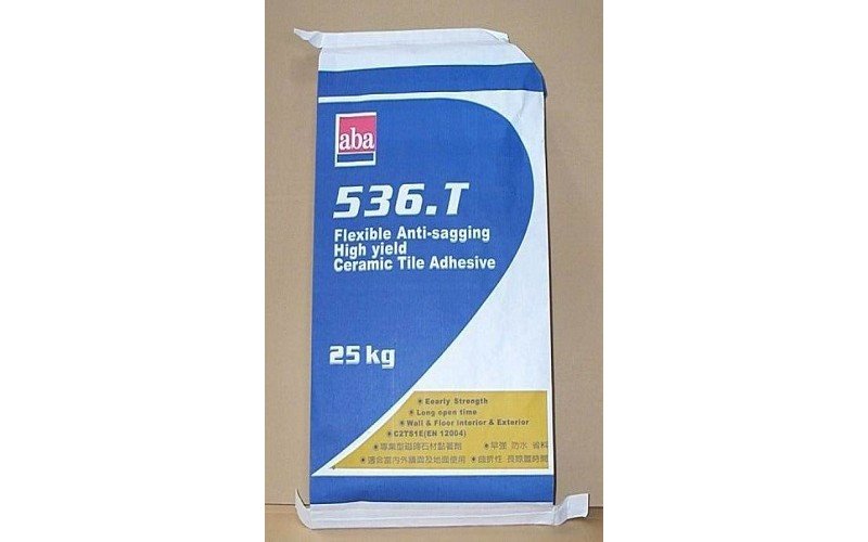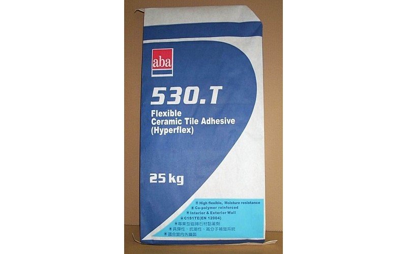 ABA 多用途曲折性磁磚黏著劑為彈性、具優異抗剪力、抗拉力之高分子、橡膠改質複合型粉狀磁磚黏著劑。因具高曲折性及可吸收至3.5mm變位,適用於高層建築物,或預期震動、搖晃或嚴重熱脹冷縮場合之磁磚黏貼。本劑符合EN 12004/ISO 13007 draft規範之C1S1TE等級。