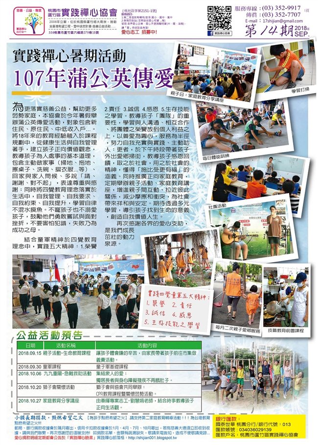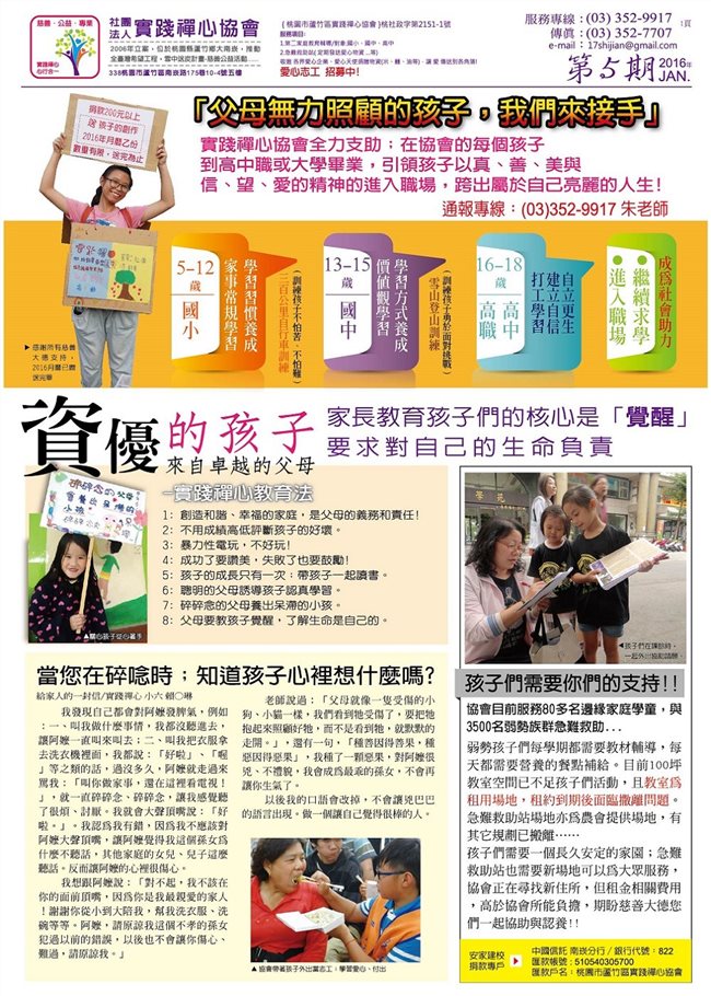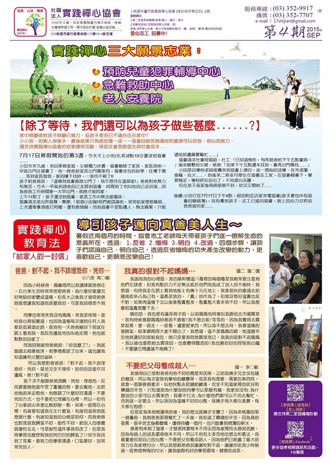 「實踐禪心協會」推動正向家庭教育,分享20多年的輔導教育經驗,期望能幫助每一個家庭。祝您闔家 平安喜樂