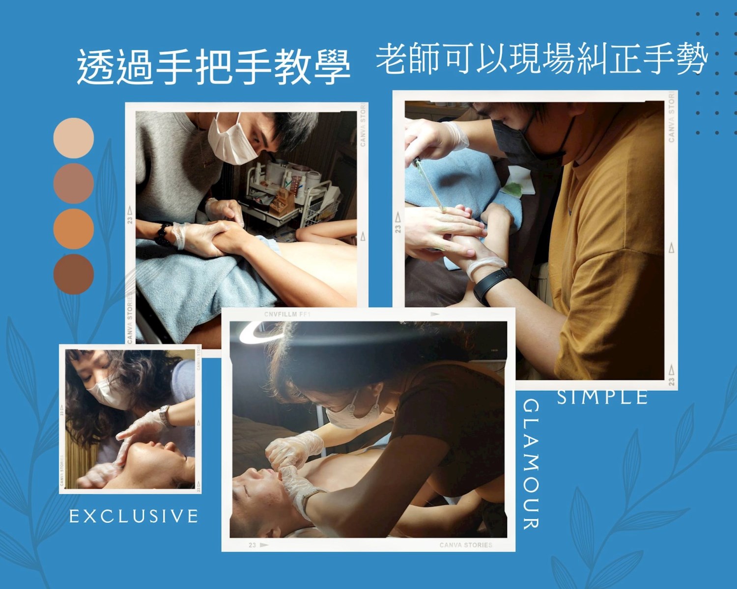 永哲老師採用獨特手勢及口訣式教學法,課程設計簡單扼要,並提供全天熱蠟除毛實作時間,每位學員皆可在老師的即時指導下快速掌握專業技術。