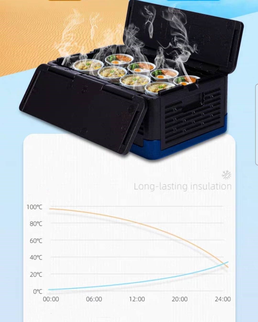 產品特色:利用汽車工業材料EPP製作而成的折疊保溫箱,本身為抗菌,抗化學性且冷熱皆宜,收納後可節省60%的體積,是商家運輸,家庭露營的好選擇。