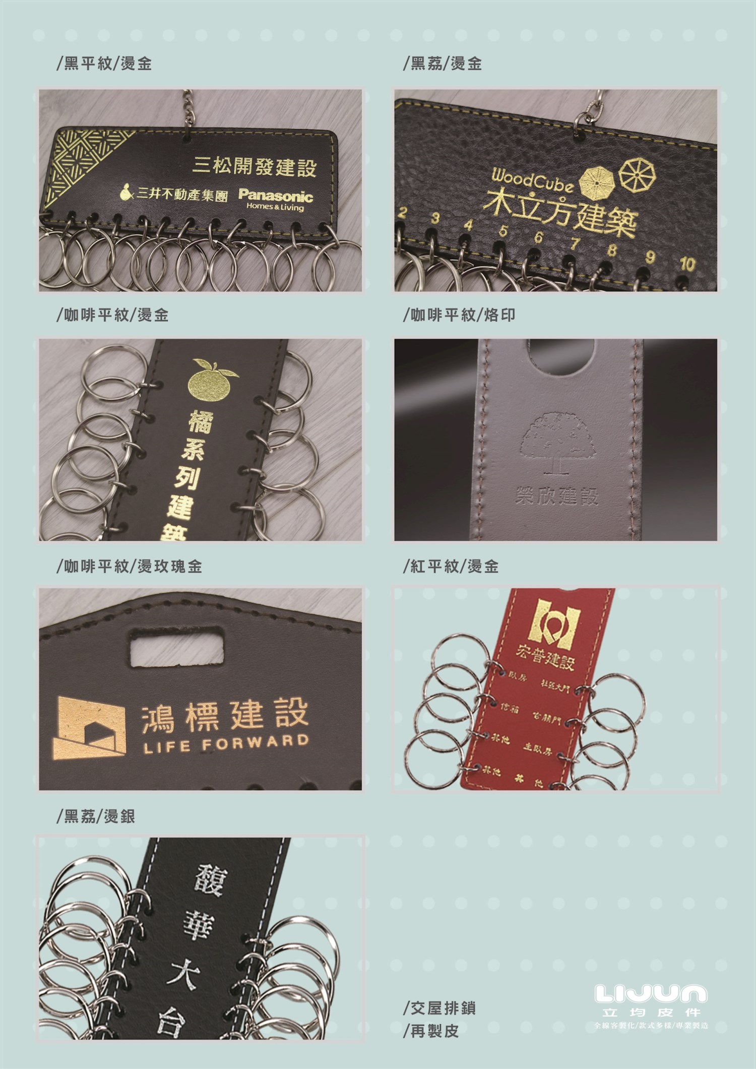 立均實業是台灣在地工廠直營, 有自己一貫作業的生產線,交屋包,交屋資料包,交屋排鎖,鑰匙圈,鑰匙皮套,皮件等精品客製化設計與製造優良廠商, 提供皮件類少量專業客製化訂製服務,款式創新多樣