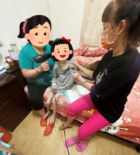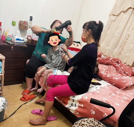 小君妹因為身體狀況沒有辦法自己起床、沒有辦法自己用餐,身上有管路也沒有辦法支撐自己,所有的生活都是需要他人的幫忙,但就算如此在阿嬤跟服務員共同協助下完成身體的清潔後,還是要請阿嬤幫妹妹梳個美美的髮型,漂亮地度過每一天。