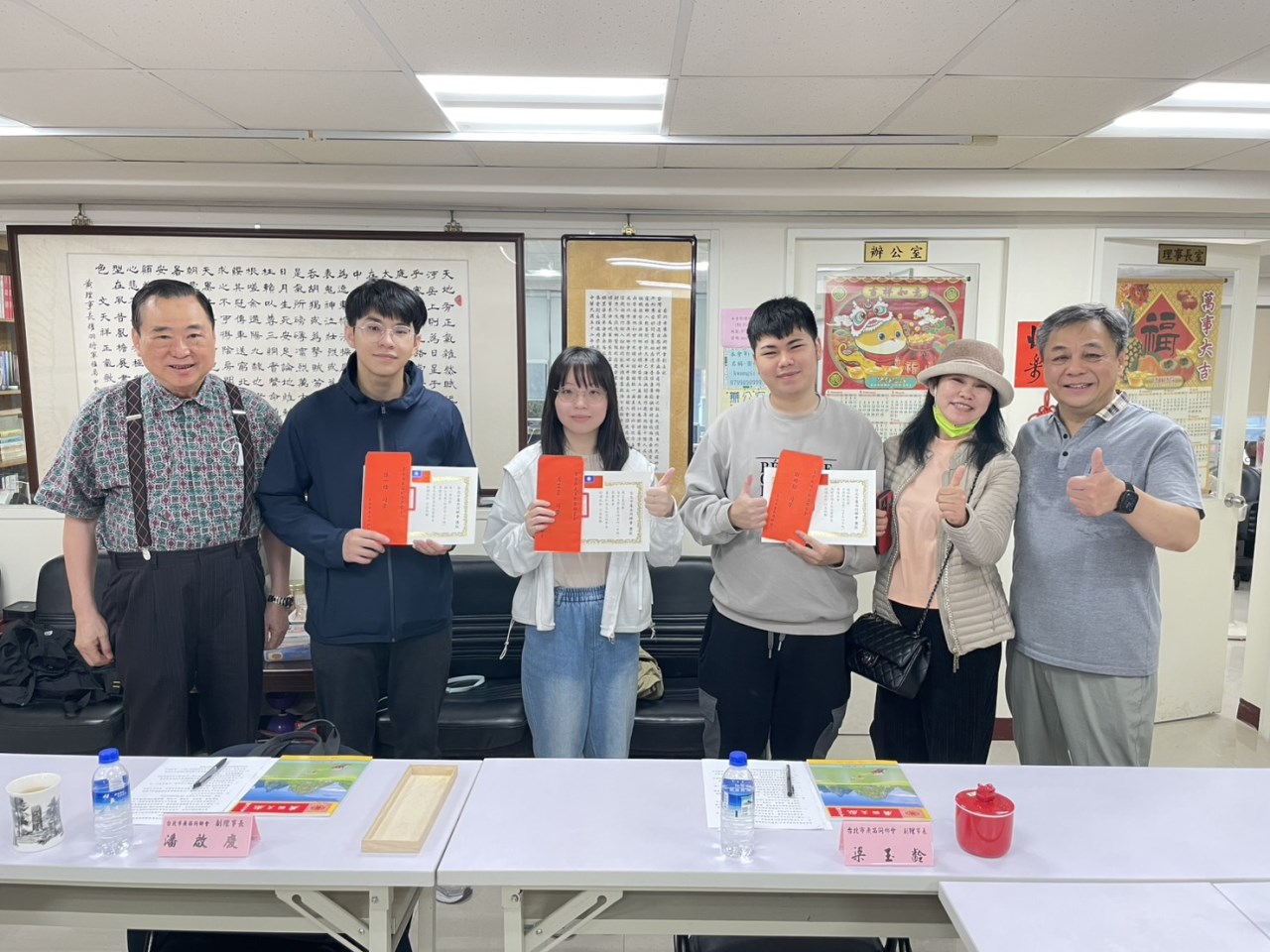 學生陳一維、周芷瑄、謝明勳補頒獎學金
