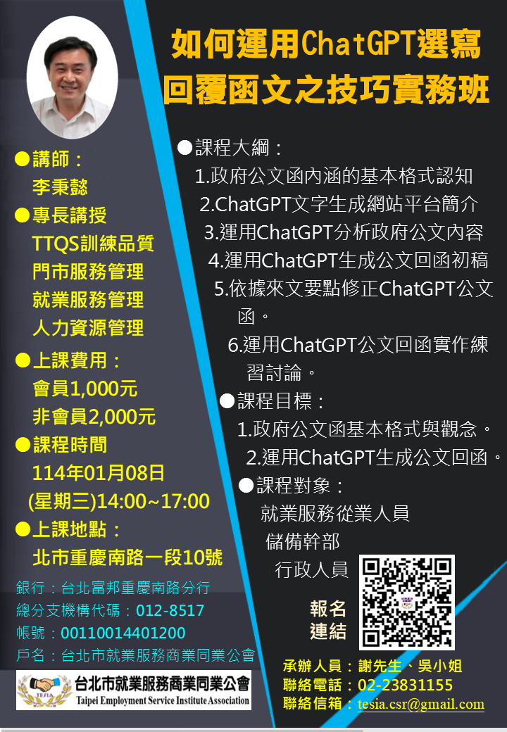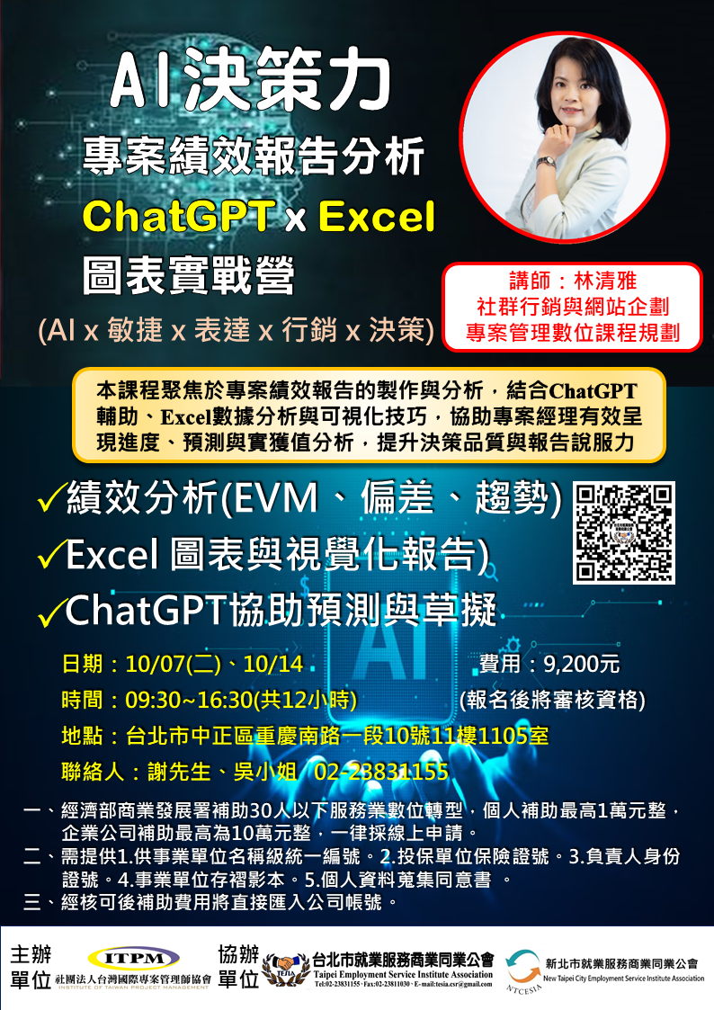 10月7日及14日09:30-16:30「AI決策力:專案績效報告分析×ChatGPT×Excel圖表實務班