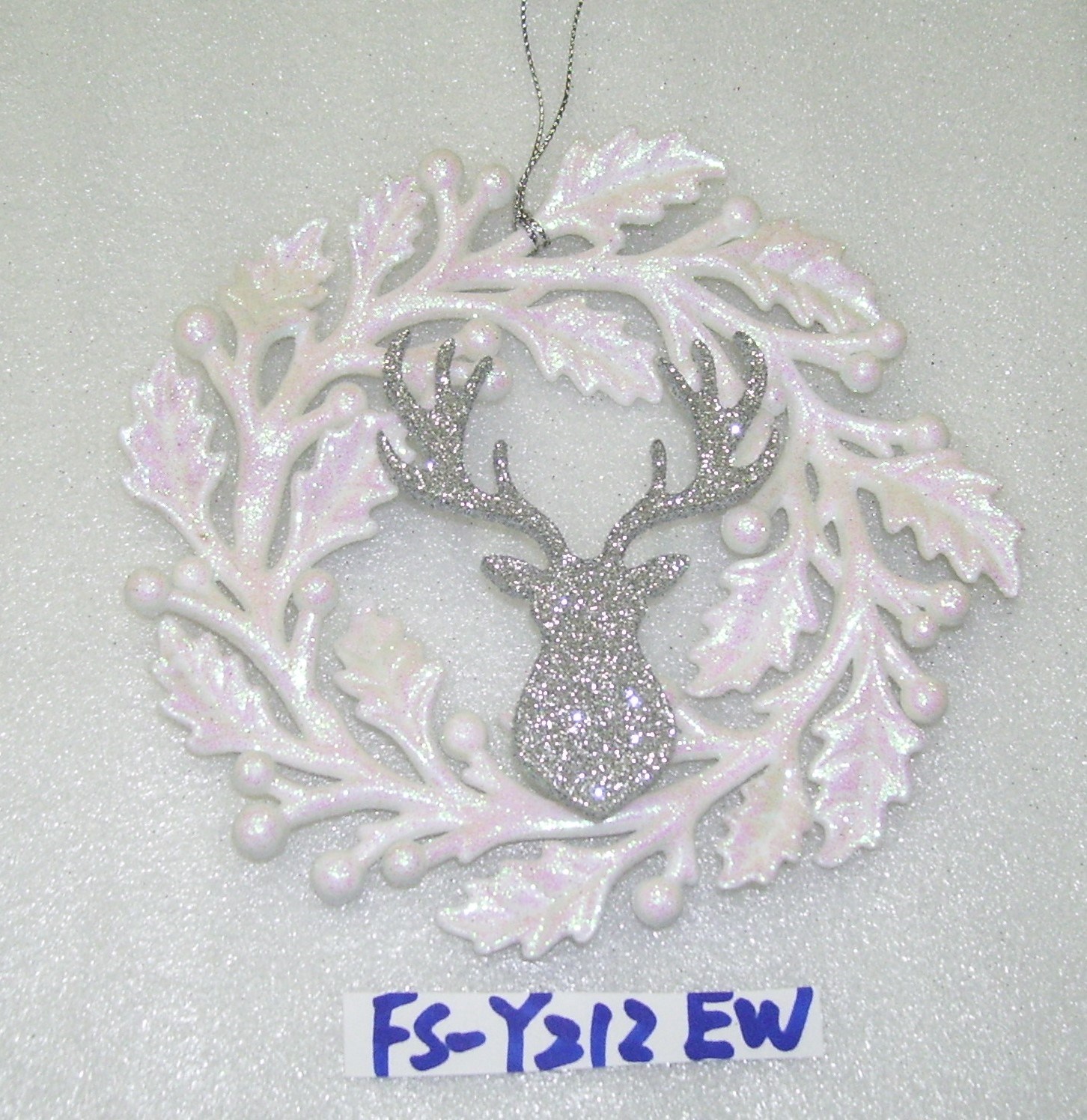Acrylic white glitter Deer wreath ornament