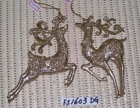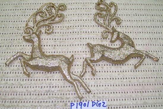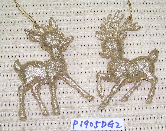 Acrylic Lt. gold glitter Deer ornament set/2