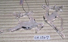 Acrylic clear w/silver glitter Deer ornament set/2