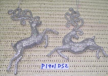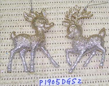 Acrylic Lt. silver glitter Deer ornament set/2