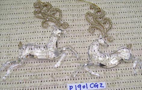 Acrylic clear w/glitter Deer ornament set/2