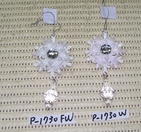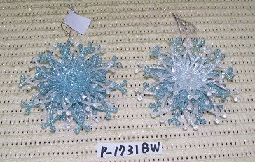 Acrylic white glitter pearl snowflake ornament set/2 colors