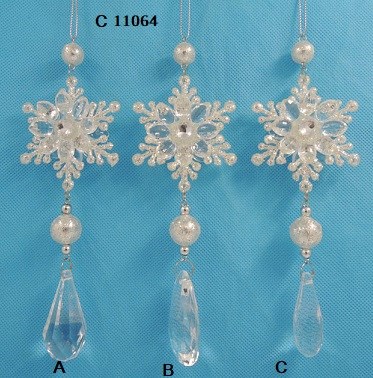Acrylic white glitter pearl snowflake ornament 3 colors