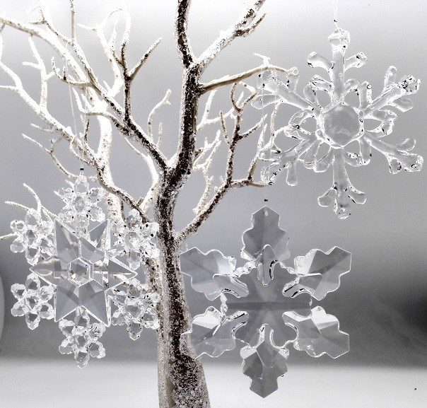 Acrylic pearl white glitter snowflake ornament 2 colors