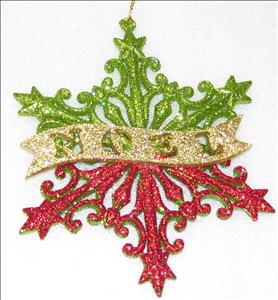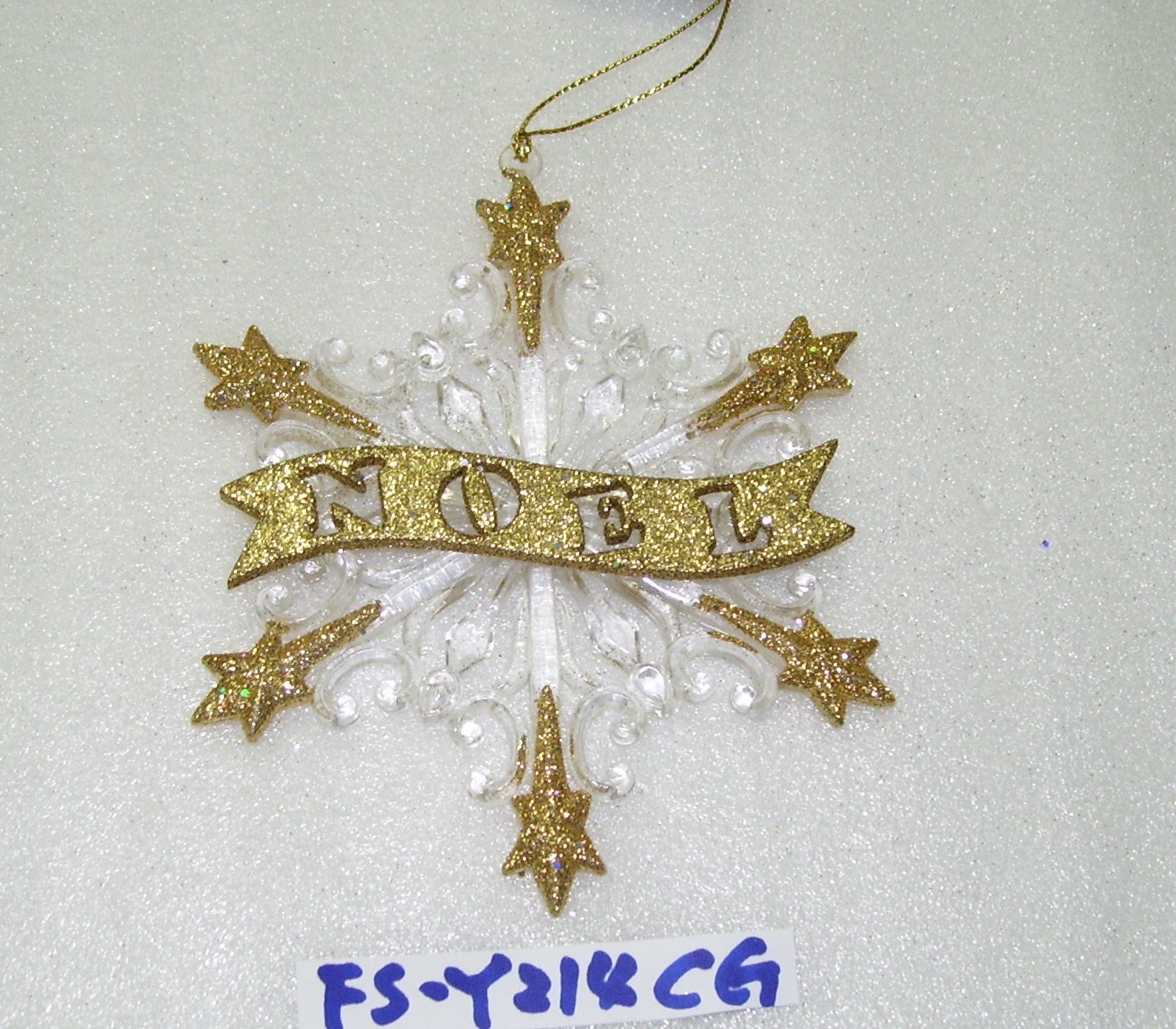 Acrylic glitter w/"NOEL" snowflake ornament 2 colors