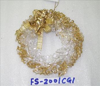 Acrylic glitter Angel wreath w/bell ornament 2 colors