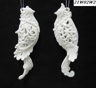 Acrylic white glitter filigree robin bird ornament set/2 styles