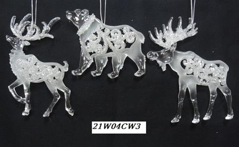 Acrylic frosted white glitter snowflake string bear ornament 3 styles