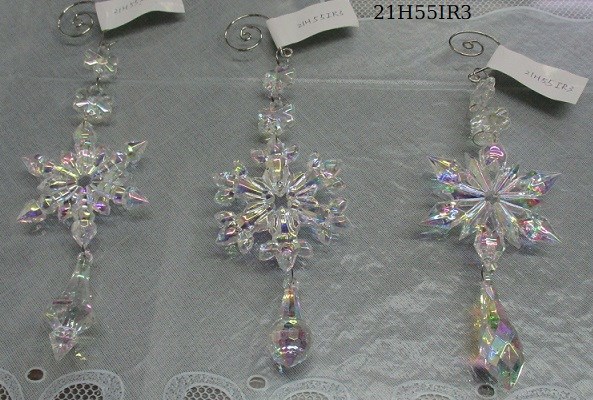 Acrylic iridescent snowflake icicle ornament set/3 styles