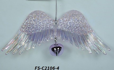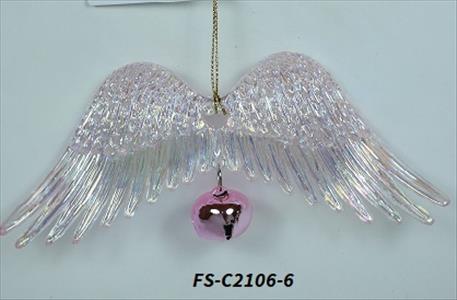 Acrylic plated pink angel wing w/bell ornament